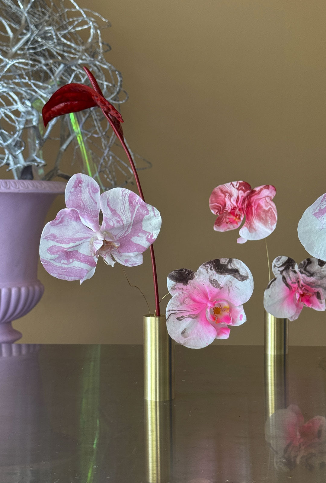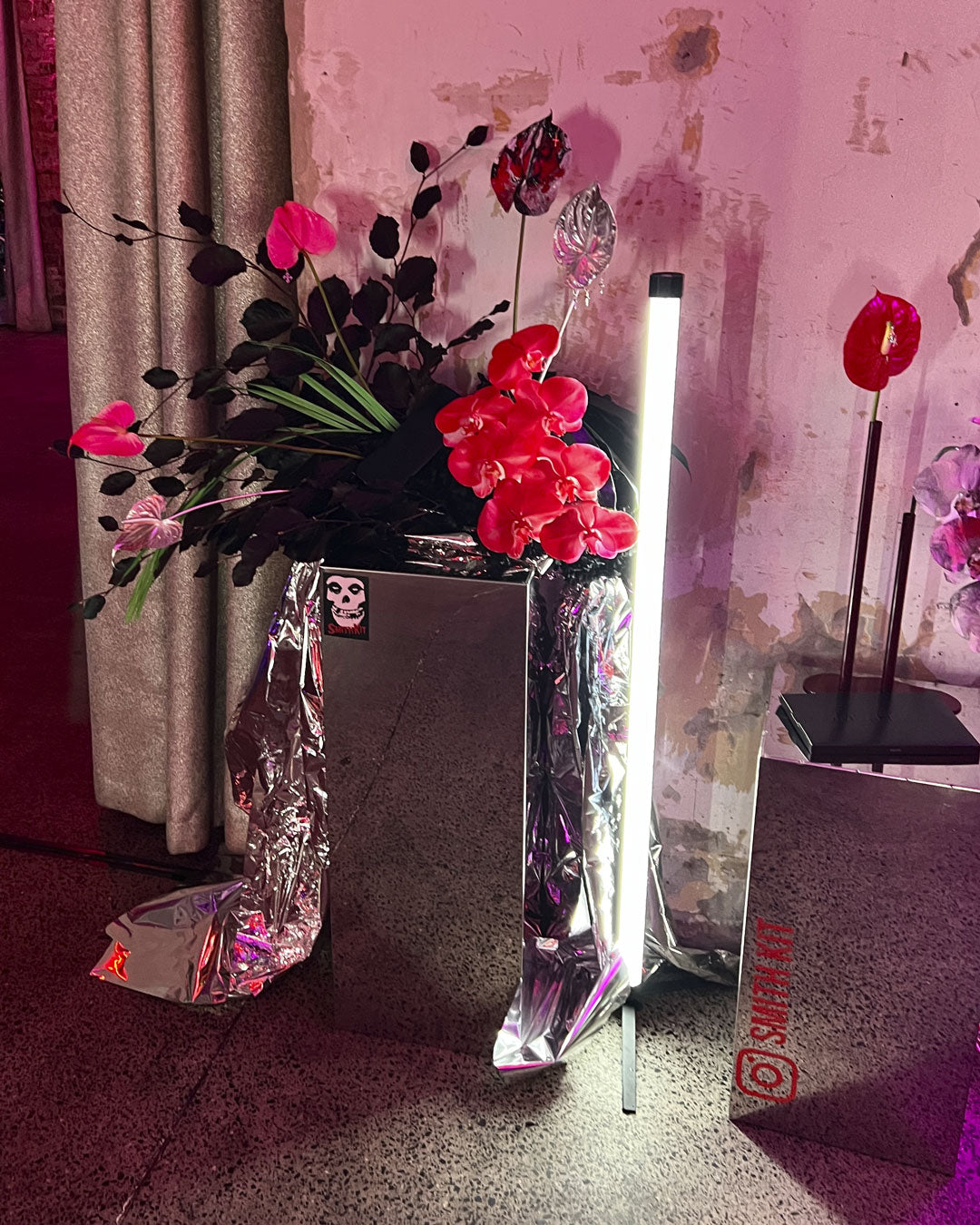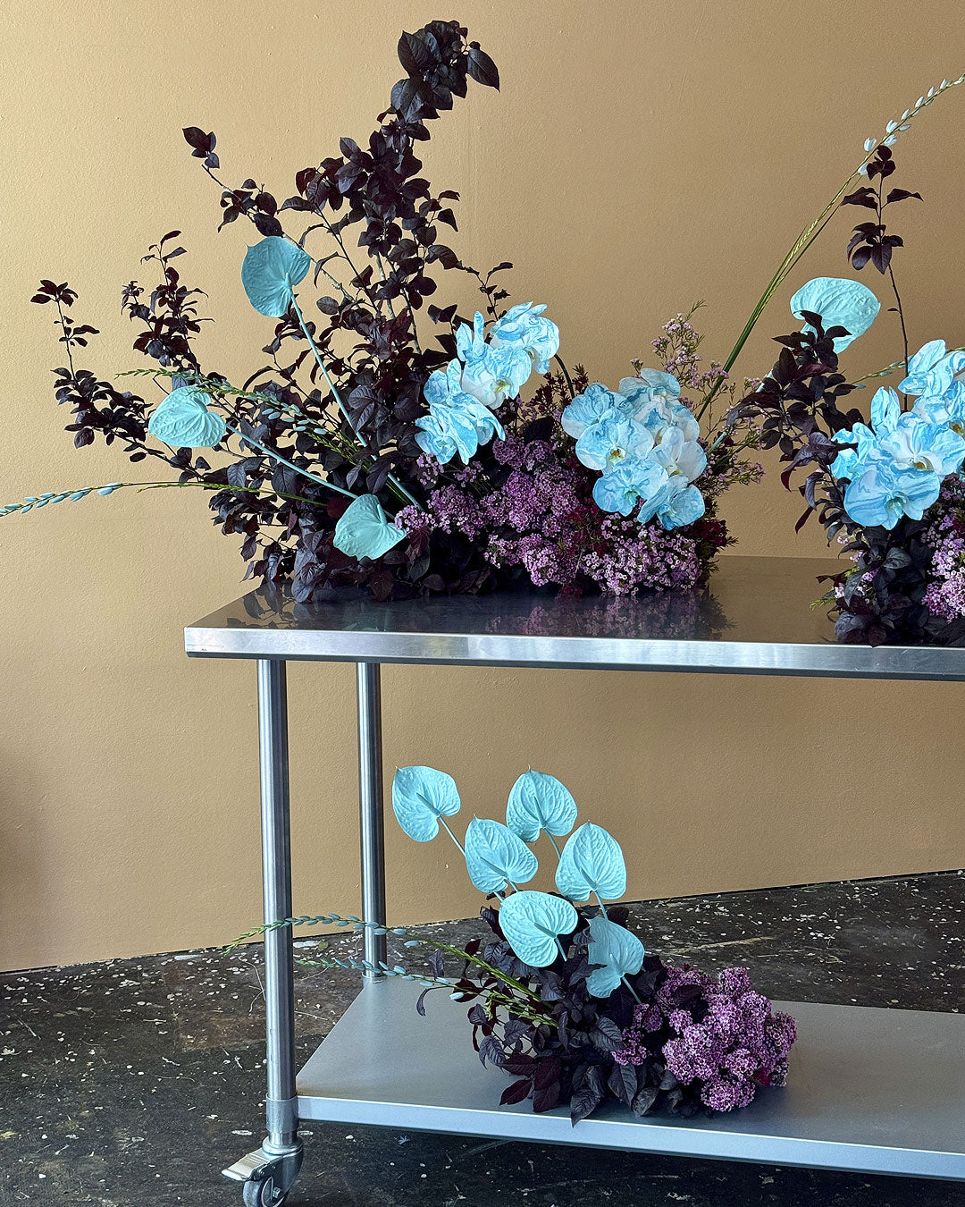 Mixed floral arrangements combine sculptural botanical elements with ACID.FLWRS signature painted flowers.