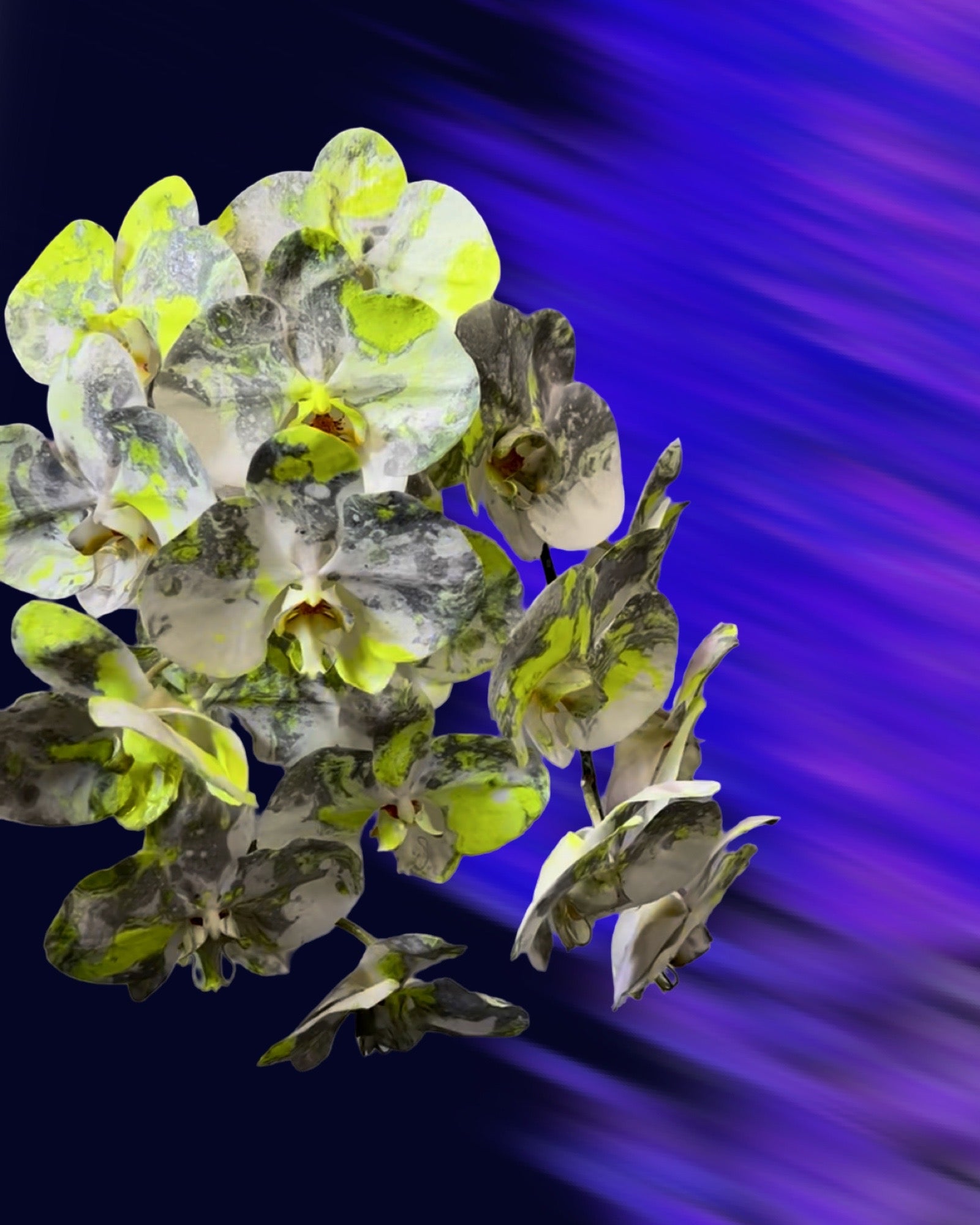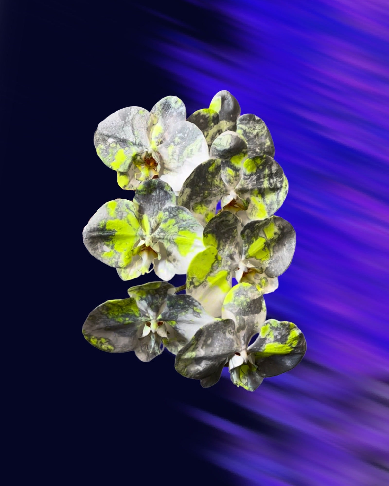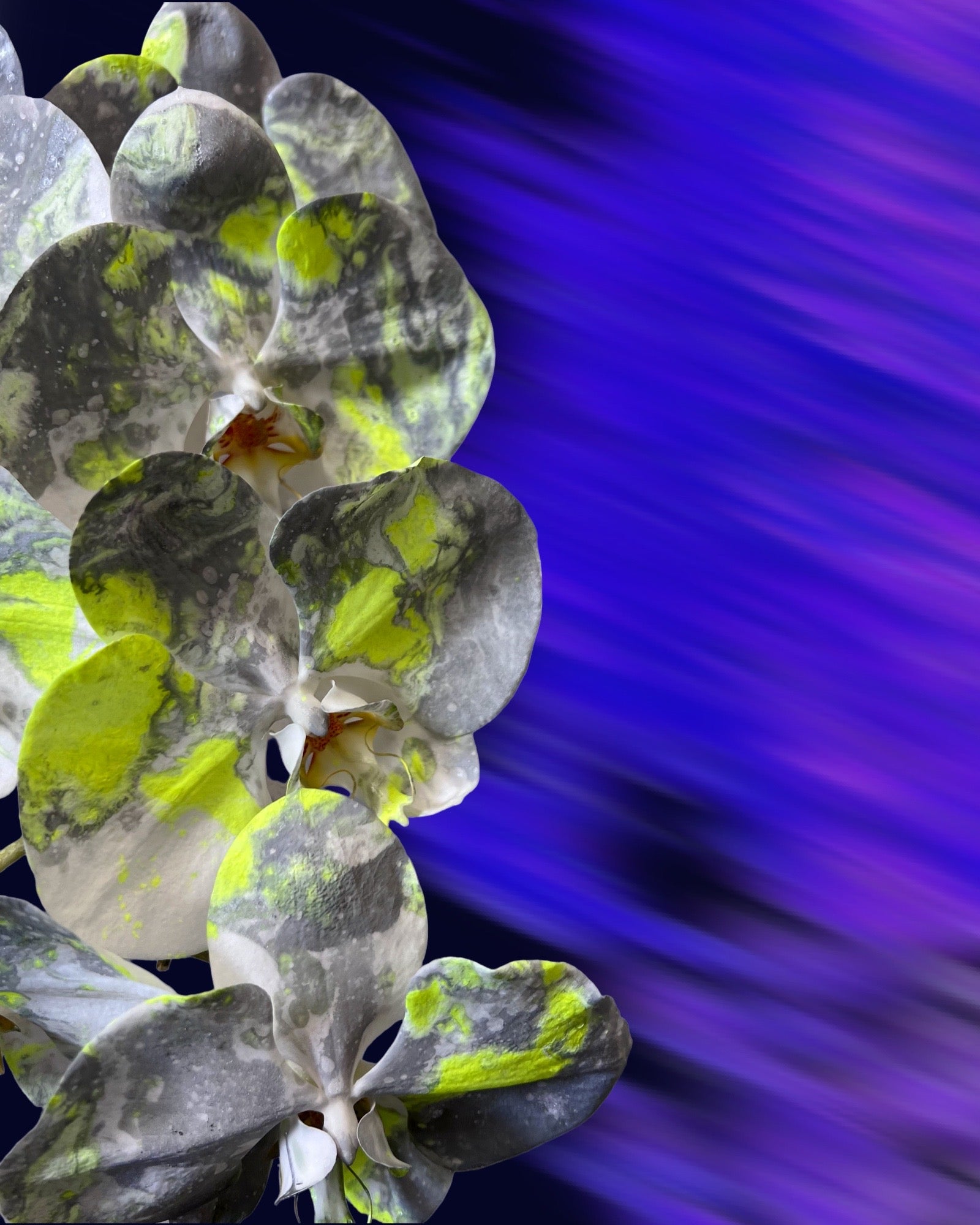 This is a pre-order of living art, double stem custom painted Acid Phalaenopsis orchids, in signature packaging 🥀
